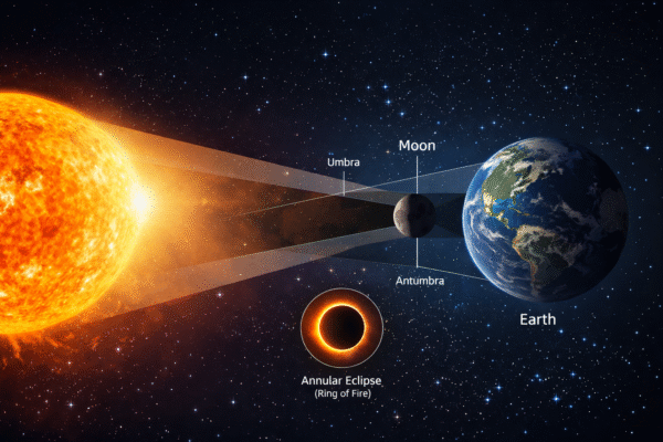 In early 2026, the first solar eclipse of the year will create a striking celestial event: a luminous “Ring of Fire” visible over Antarctica. Known scientifically as an annular solar eclipse, this phenomenon occurs when the Moon passes directly in front of the Sun but does not completely cover it, leaving a radiant ring of sunlight around the lunar silhouette.